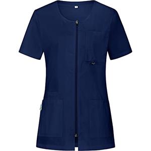 TCD Divisa Sanitaria Infermiere Completa di Casacca e Pantalone | Camice Bianco Medicale Unisex Uomo e Donna | OSS Ospedale Estetista Veterinario Dentista (U07 Blu Navy, L)