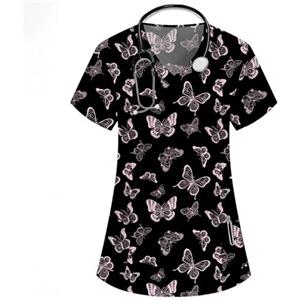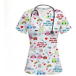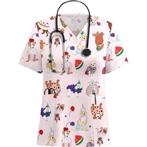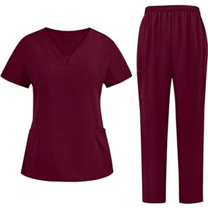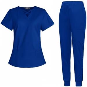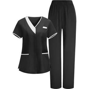 KHIRVWL Divisa Infermiere Donna Divisa Sanitaria Set con Casacca e Pantalone Sanitaria Uniformi Infermiera Ospedaliere con Cordoncino Camice Medico Donna Set Uniforme Maglia Frontale & Pantaloni, S-XXL