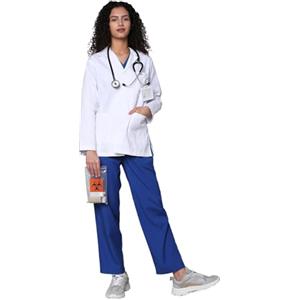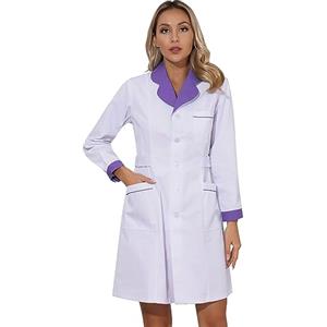 SPANCARE PHARMACEUTICALS Camice da laboratorio da donna | Grembiule medico corto a maniche lunghe in poliestere viscosa | grembiule da laboratorio con 3 tasche, Bianco, M