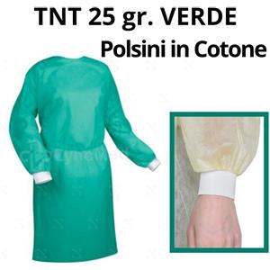 MONOSAFE Camice monouso TNT 25 gr Colore Verde Polsini in Cotone protettivo paziente visitatore chirurgico [ No Minimo Ordine ] Spedizione in 24-48 Ore - oltre 2.000 pz."