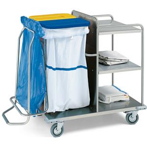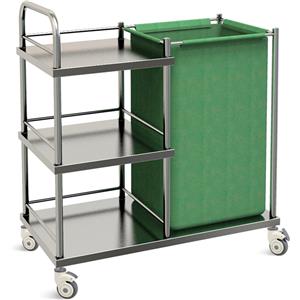 GIMA Carrello Lavanderia - Struttura in Acciaio Inox, 3 Ripiani, Sacco di Tela, Rotelle Silenziose Ø 7,5 cm