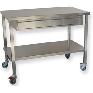 GIMA Tavolo da Lavoro Inox - Acciaio AISI 304, 4 Ruote, 2 Cassetti, Dimensioni 120x70xH95 cm