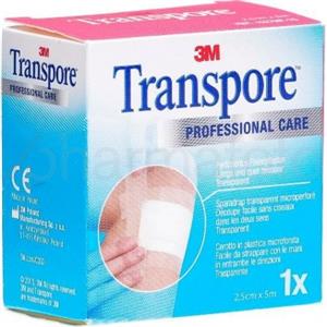 3M Cerotto In Rocchetto Transpore Ipoallergenico 2,5 x 500 cm - Cerotto Trasparente in Plastica Porosa con Forte Adesività