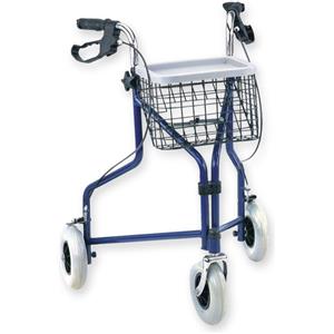 GIMA Deambulatore da Passeggio a 3 Ruote - Struttura in Acciaio Blu, Altezza Regolabile, con Cestello e Vassoio