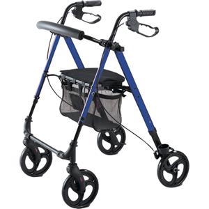 GIMA Deambulatore Ideal Blu - Struttura in Acciaio Pieghevole, Regolabile in Altezza, con 4 Ruote, Freni a Mano e Sedile Imbottito in Ausili Disabilità