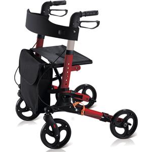 GIMA Deambulatore Compact Pieghevole Rosso - Telaio in Alluminio Leggero, Regolabile in Altezza, con Sedile e Freni ad Anello