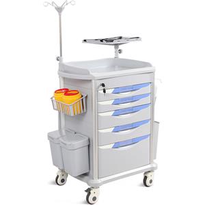 SAIKANG MEDICAL Carrello Emergenza Neo Plus - Carrello in ABS Antibatterico con 5 Cassetti e Rotelle
