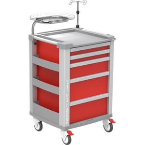 GIMA Carrello Emergenza Small - Acciaio Verniciato, 4 Cassetti, Cestino Laterale e Vassoio Defibrillatore