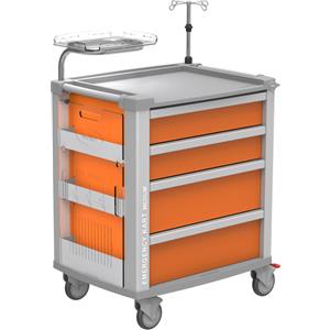 GIMA Carrello di Emergenza MEDI KART Arancione - 4 Cassetti (2 Medium, 2 Large) in Alluminio