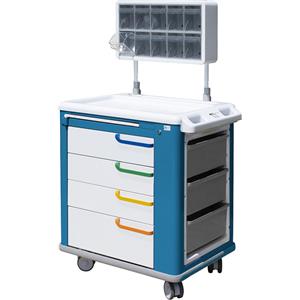 Gima Carrello Terapia Aurion Azzurro - 5 Cassetti, Asta Portaflebo, Cestino, Dimensioni 775x710xh920 mm
