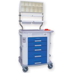 GIMA Carrello di Emergenza Aurion Blu - 5 Cassetti con Asta Portaflebo e Porta Defibrillatore