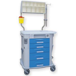 GIMA Carrello di Emergenza Aurion Blu - 5 Cassetti con Asta Portaflebo e Porta Defibrillatore