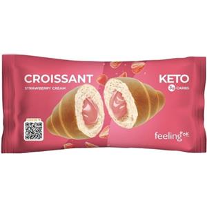 Feeling OK Croissant alla Fragola Protein 65g - Croissant ripieno di crema alla fragola, basso contenuto di carboidrati e alto in proteine