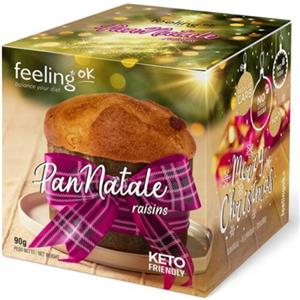 Feeling Ok Pan Natale Uvetta 90 g - Dolce Natalizio Soffice a Basso Contenuto di Carboidrati Senza Farina