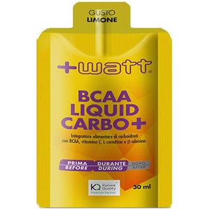 +Watt BCAA Liquid Carbo+ - Integratore Alimentare Liquido a Base di Carboidrati con BCAA - Senza Glutine - 30 Pouch da 30 ml Gusto Limone
