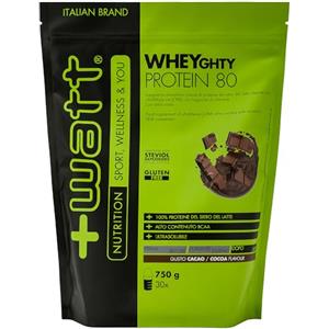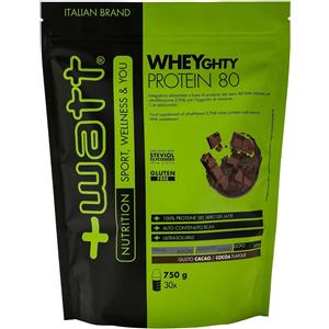 +Watt Wheyghty Protein 80 - Integratore a Base di Proteine del Latte all'80% - Formato: 750 g Doypack - Gusto: Cacao