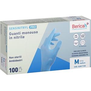 Bericah Guanto Monouso Sensinitryl Pro in Nitrile Medium 100 Pezzi - Non Sterili, Senza Polvere, Blu, Ambidestri