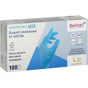 Bericah Guanto Monouso Sensinitryl Pro in Nitrile Large 100 Pezzi - Non Sterili, Senza Polvere, Blu