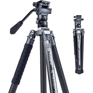 Fotopro X-Aircross 3 Treppiede da Viaggio in Fibra di Carbonio, Leggero e Portatile con Testa Fluida - Altezza 62 Pollici