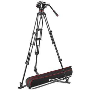Manfrotto 504X - Testa Video Fluida e Treppiede Doppio Tubo in Alluminio, Portata 12 kg, con Stabilizzatore Centrale e Sacca per Trasporto