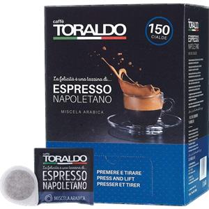 CAFFÈ TORALDO | Cialde ESE 44 | Caffè Selezionato, Tostato e Torrefatto in Italia | Eccellenza del Caffè Napoletano (150 Cialde, Miscela Arabica)