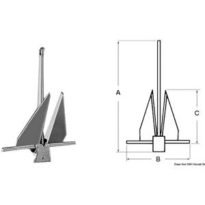 OSCULATI Ancora Danforth 4 kg in Acciaio Zincato - Dimensioni 525x430 mm