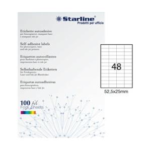 STARLINE Etichette Adesive Bianche Permanenti 52,5x25 mm - 48 Etichette per Foglio - Confezione da 100 Fogli A4