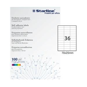 STARLINE Etichette Adesive Bianche 70x25mm - 100 Fogli A4, 36 Etichette per Foglio, Adesivo Permanente
