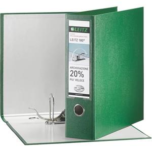 Leitz Registratore 180° G65 Verde - Dorso 8 cm - Protocollo 23x33 cm - Cartone Rivestito in Polipropilene con Finitura Similpelle