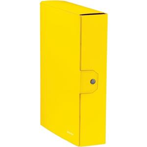 LEITZ Scatola Progetto WOW Gialla - Cartoncino 1mm, Chiusura a Bottone, Dorso 8 cm, Formato 25x35 cm