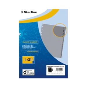 Starline Divisori Numerici 31 Tacche A4 in Polipropilene Grigio