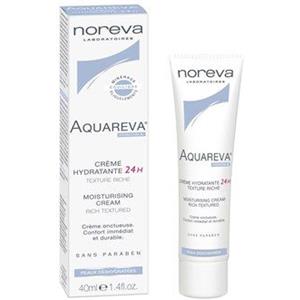 Noreva Aquareva Crema Idratante Ricca 24H - Trattamento per pelle secca con Acido Ialuronico e Omega 3, 40 ml