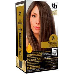 TH PHARMA V-COLOR Kit Colorazione Permanente Senza Ammoniaca 7,1 Biondo Medio Cenere con Oro Liquido e Oli Floreali
