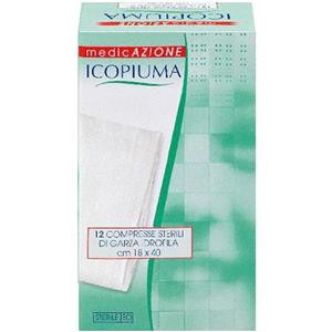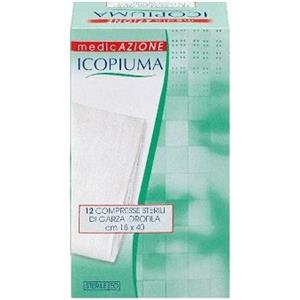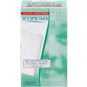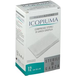 DESA PHARMA Srl ICOPIUMA GARZA COMPRESSA IDROFILA IN COTONE PIEGATA STERILE SENZA FILO DI BARIO TITOLO 12/8 MISURA 18X40 CM IN BUSTA SINGOLA 12 PEZZI