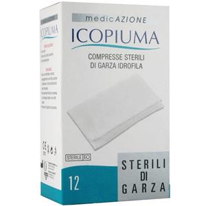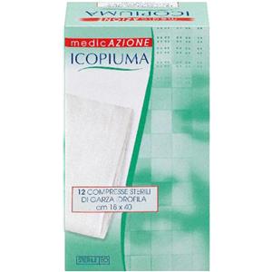 ICOPIUMA GARZA COMPRESSA IDROFILA IN COTONE PIEGATA STERILE SENZA FILO DI BARIO TITOLO 12/8 MISURA 18X40 CM IN BUSTA SINGOLA 12 PEZZI