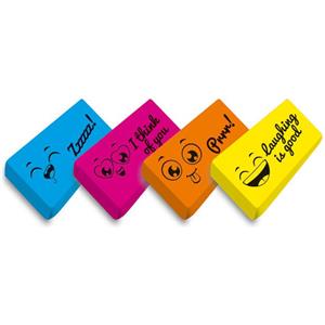 Mitama Reset Fluo Gomma per Matita - Colori Fluo Assortiti, 4 Pezzi 1 Omaggio, Eco-Pvc, Ultra Cancellante