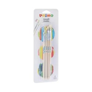 Primo Pennelli d'Artista Punta Piatta - Blister da 5 Pezzi, Misure Assortite 0/2/4/6/8, Setole in Setola