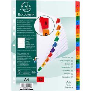 Exacompta Separatore Alfabetico A-Z in Cartoncino Bianco 160g - 20 Tasti Colorati - A4
