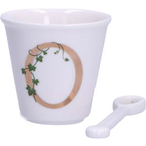 La Porcellana Bianca - Bicchierino Lettera O con Cucchiaino in Porcellana - 75cc, Ø 6,7cm, h6cm - Arredo Casa e Idea Regalo