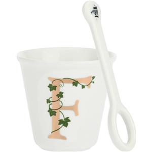 La Porcellana Bianca - Bicchierino Lettera F con Cucchiaino - Porcellana Elegante 75ml, Ø 6,7cm, h6cm - Idea Regalo