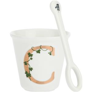 La Porcellana Bianca - Bicchierino Lettera C con Cucchiaino in Porcellana - 75ml, Ø 6,7cm, h6cm - Idea Regalo Elegante