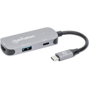 Manhattan Docking Station USB-C 3-in-1 con HDMI, USB-A e Power Delivery - Ricarica Simultanea e Risoluzioni Ultra High