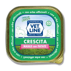 Vetline Umido Crescita per Cuccioli - Maiale e Patate, 150g, Alimento Naturale Completo