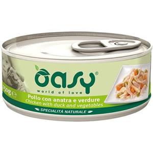 Oasy Pollo con Anatra e Verdure - Alimento Complementare Naturale per Cani Adulti - Lattina da 150g