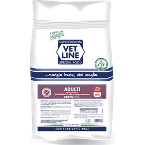 Vet Line Crocchette per Cani Adulti di Piccola Taglia al Cervo - 800 gr con 7 Erbe Officinali