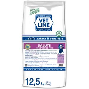 Vet Line Secco Monoproteico Cane Salute Pesce 12,5 kg - Crocchette monoproteiche cane - 1° ORDINE? fino al 20% di sconto