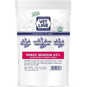 Vet Line Snack di Quaglia Monoproteico Grain Free per Cani 80g - Naturale e Integrato con Erbe Officinali