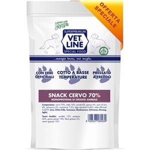 Vet Line Snack Cervo Monoproteico Grain Free 80g - Snack Naturale per Cani con Erbe Officinali