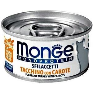 Monge Sfilaccetti Monoproteico per Gatti - Tacchino e Carote - 80g - Cibo Umido Completo e Bilanciato