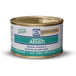 Vetline Umido Pollo e Tonno 85g - Alimento Completo e Bilanciato per Gatti Adulti con Erbe Officinali